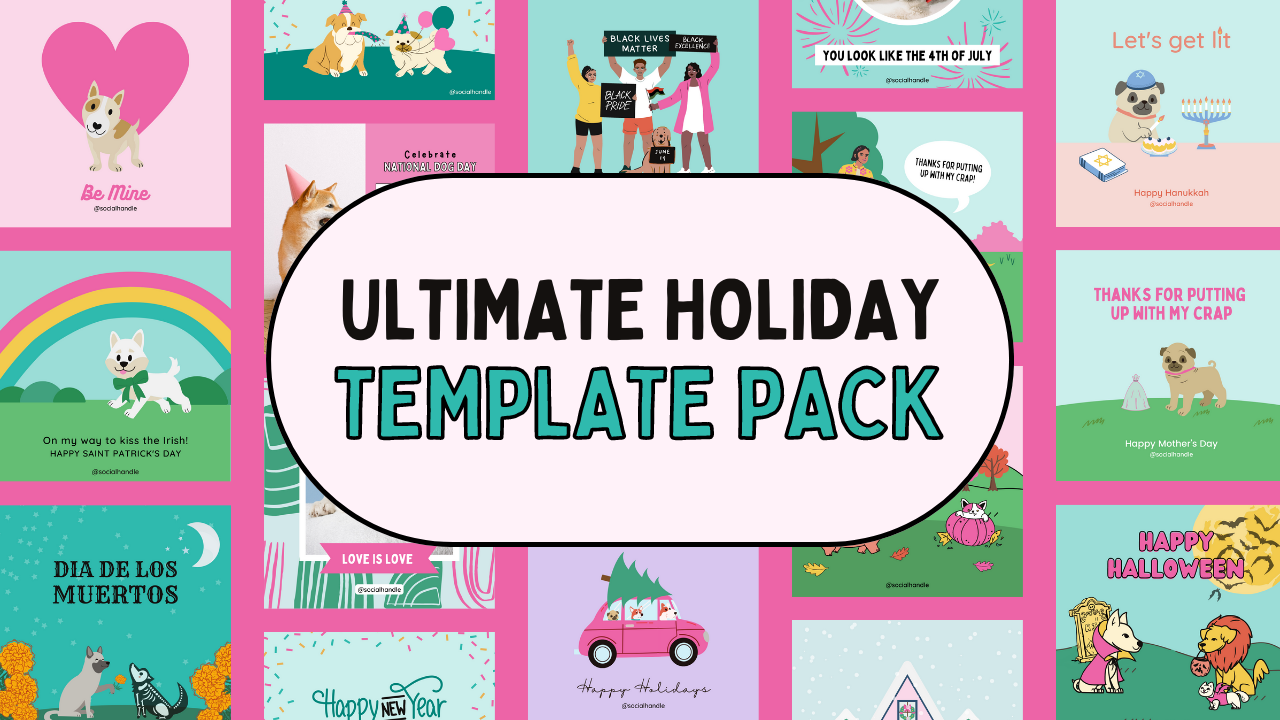 50 holiday themed Canva template designs. You'll get each design sized for both Instagram and Facebook for a total of 100 templates.